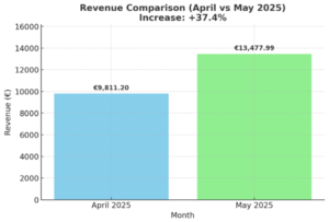 | Revenue (€) | €9,811.20 | €13,477.99 | +37.4% |